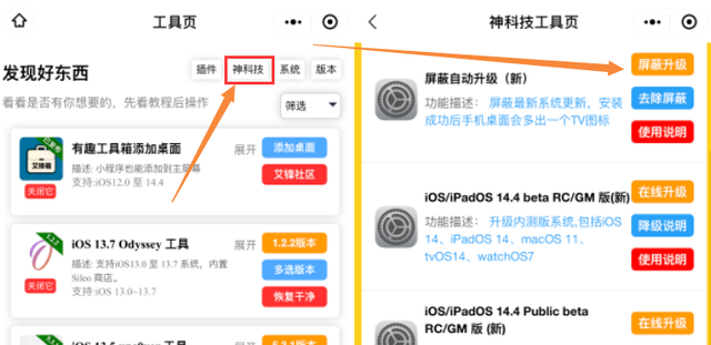 在「有趣工具箱」小程序,右上角「神科技」,找到【屏蔽自动升级】安装它,安装时弹出让你输入密码,这是锁屏密码,输入完成后就能安装成功。