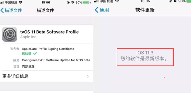 安装成功后,打开设置-通用-软件更新页面会显示当前系统为最新。
