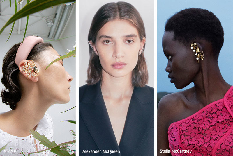 斯特拉·麦卡特尼(Stella McCartney)就是一个例子,他的过耳袖口遮住了耳朵的小金色曲线,并用珍珠来柔和这种效果。在Vivetta,一个华丽的耳套看上去就像是从耳朵里面爆炸出来的,上面有钻石花和一只小虫子。