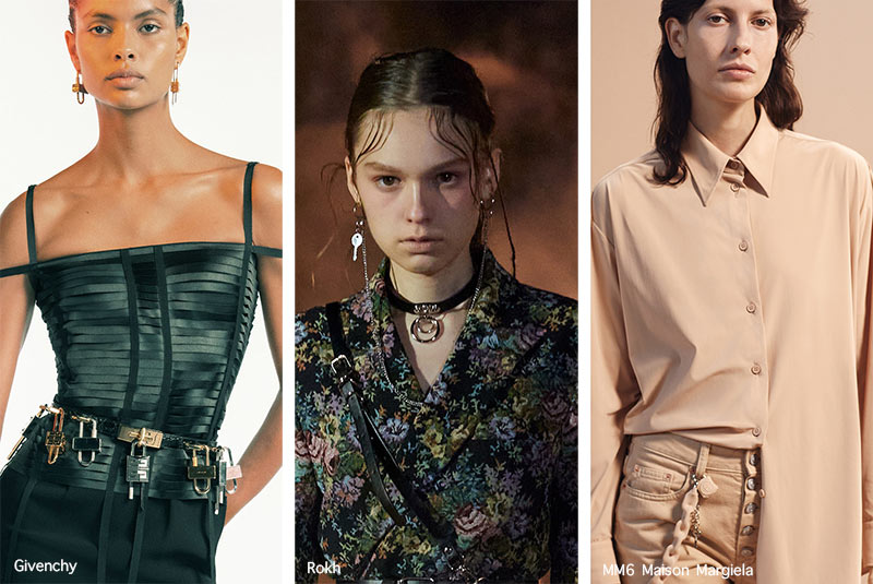 在纪梵希(Givenchy),挂满锁的腰带可能是为了看上去很前卫,但它实际上让我们想起了欧洲任何一座城市的一座桥,锁上的锁象征着永恒的爱情。