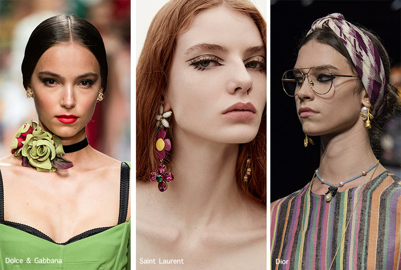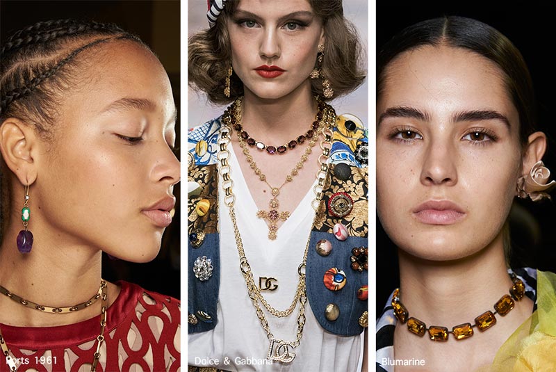 在Erdem时装秀上,模特们戴着大大的、色彩鲜艳的耳环,穿着长袍式夹克,给人一种奢华却又朴实无华的感觉。在杜嘉班纳(Dolce & Gabbana),奢华的颜色当然是必不可少的。长长的金链和充满魅力的项圈都用多种颜色装饰。