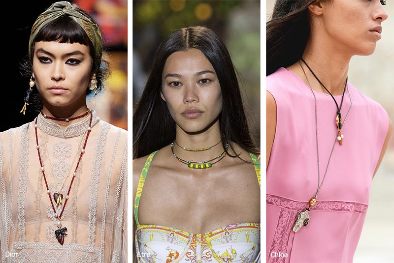 这一季,波西米亚风格在克里斯汀·迪奥(Christian Dior)的发型、手袋、服装等各个方面都很流行。因此,与珠宝搭配,由珠子和多个吊坠组成的长而多层的项链非常适合。
