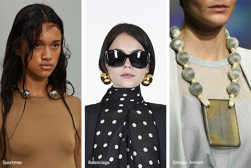 在Sportmax,金属球为极简主义的银金属颈链和袖口增添了一种厚重的氛围。如果你更喜欢金色,巴黎世家(Balenciaga)也为你打造了一款简单的球形耳环。