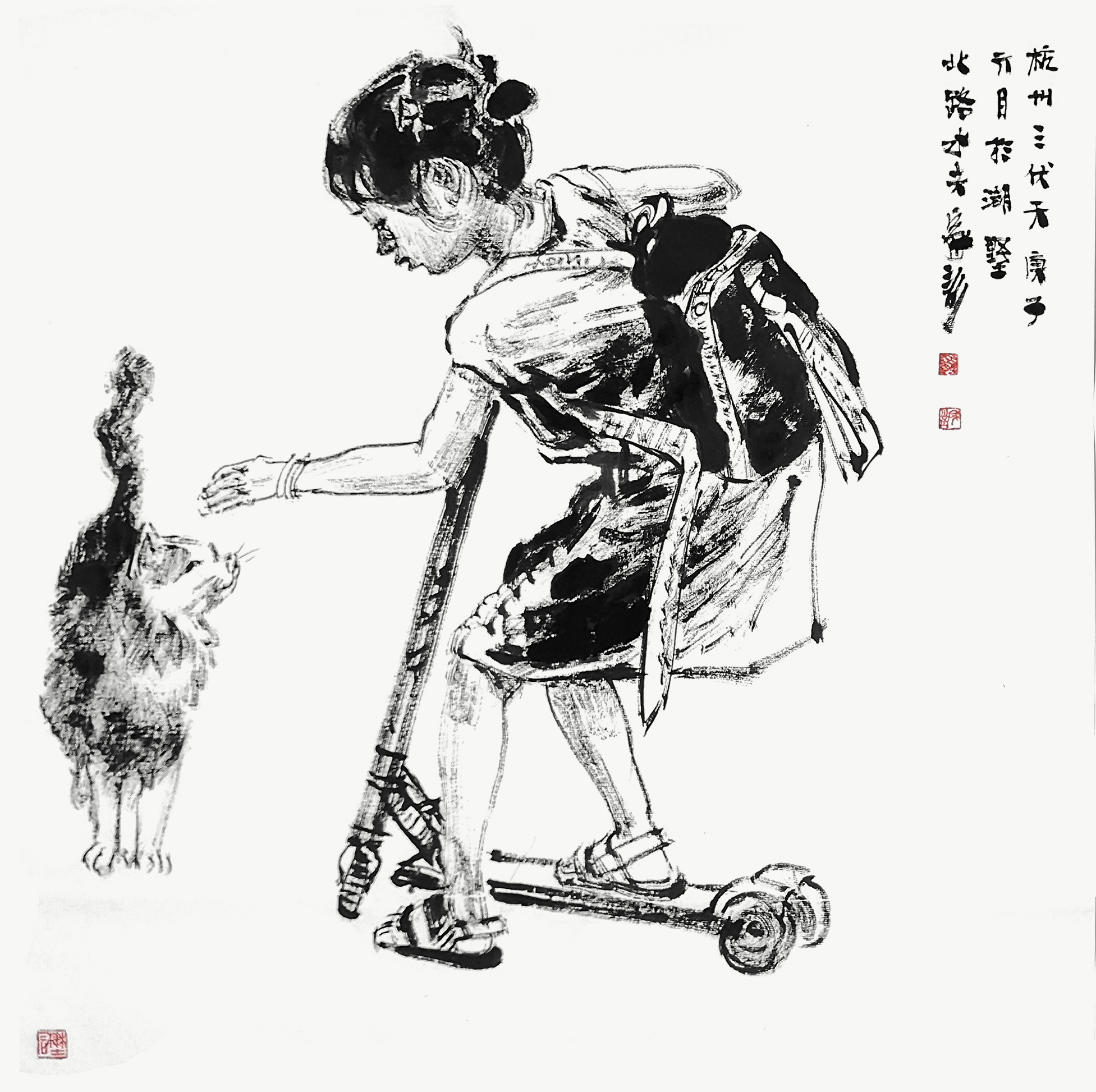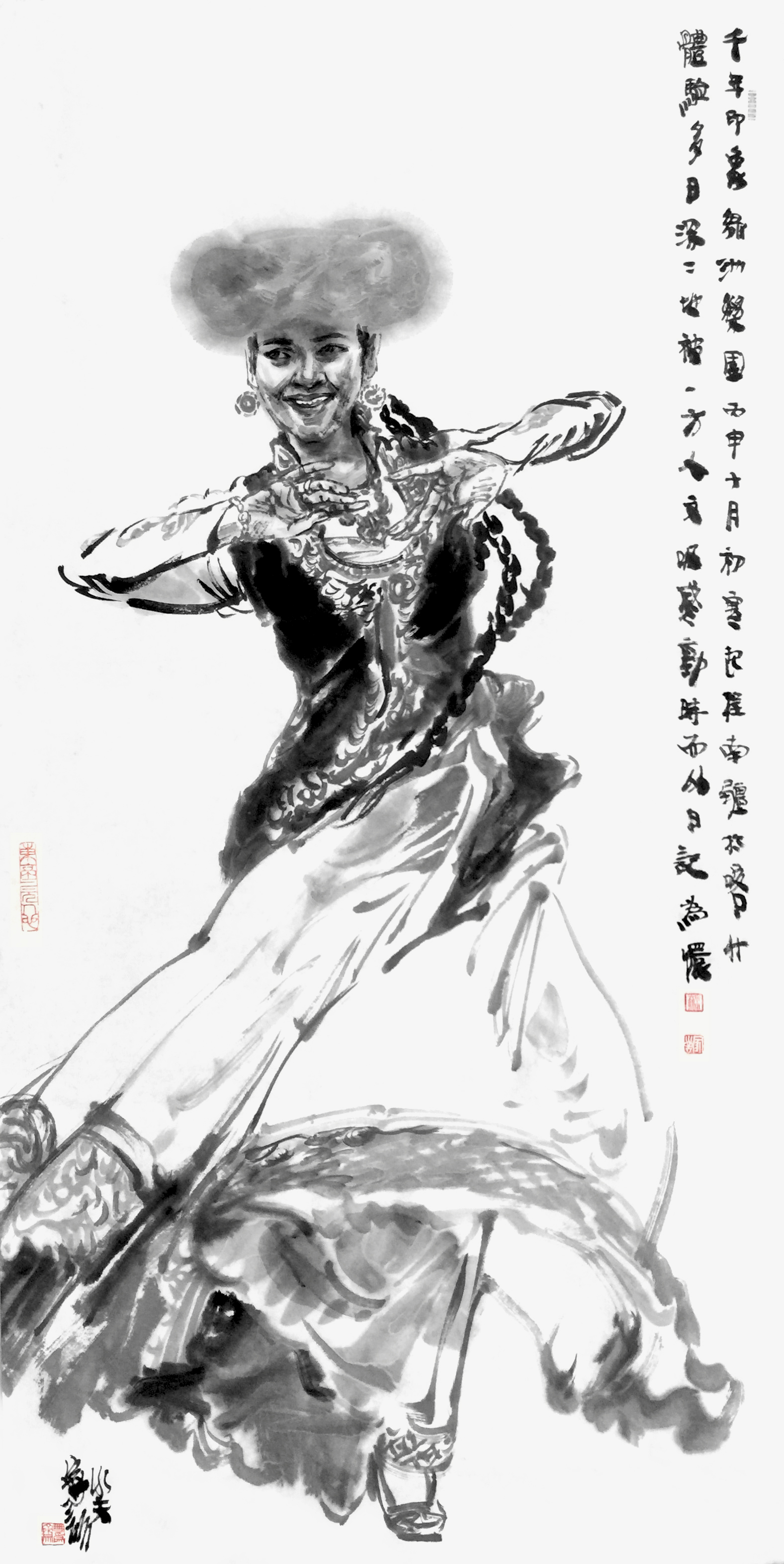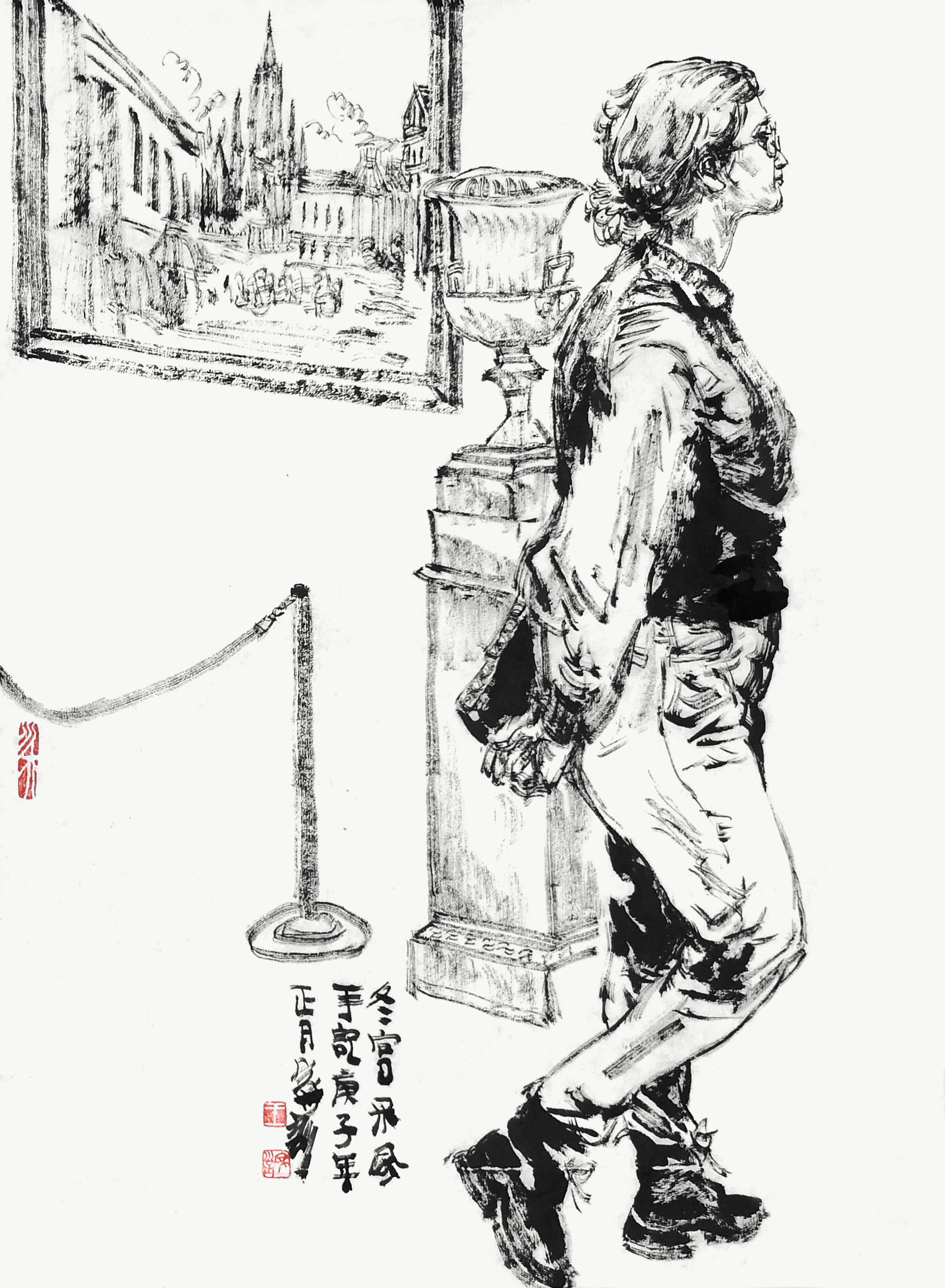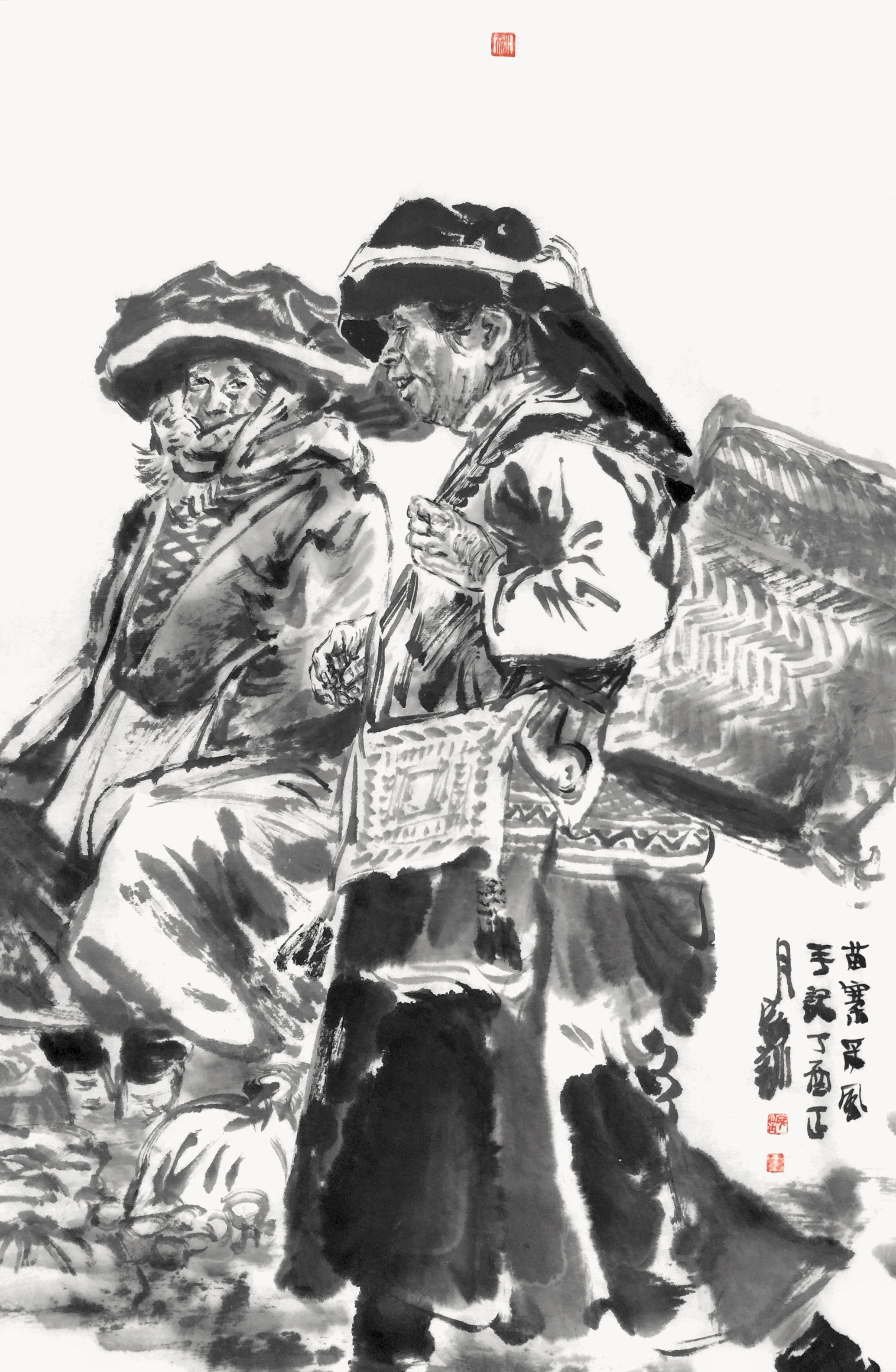 他不仅能从前人优秀的绘画传统中吸收造型的经验,更结合了其扎实的写实功底,将之融入中国画的传统笔墨之中,重视生活积累与发挥艺术想象相结合,从而使得笔下的人物都神韵十足,神情饱满。