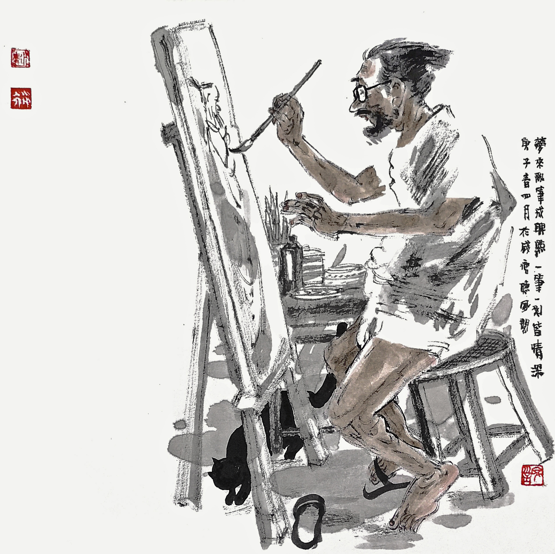 在水墨写意人物画的天地里,他注意研究、吸收各家名派所长,并且不厌足于一时的成功、小胜和所谓“自成风格”。