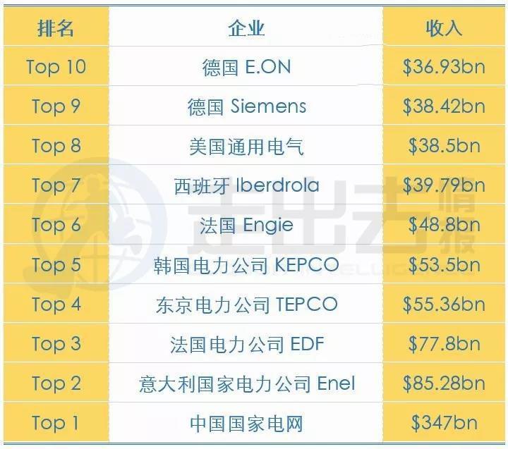 世界电力公司营收排名