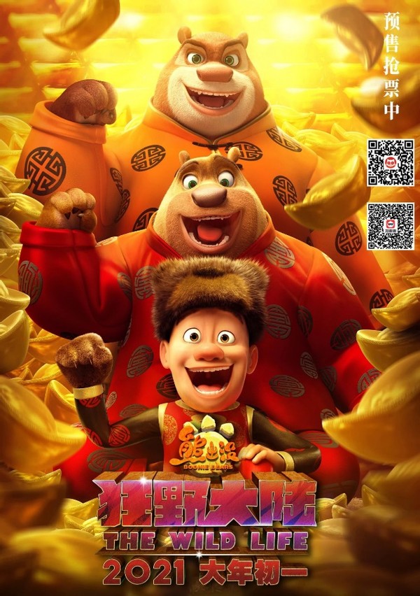 《熊出没·狂野大陆》2021年大年初一(2月12日)全国公映。届时,广大熊粉可以在影院与家人共同欣赏这部精品动画电影,也可以在春节期间带孩子去绵阳方特东方神画,与熊强继续快乐互动。