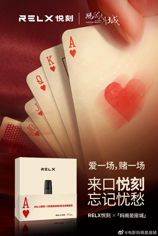 另一边,悦刻也从娱乐领域侧切,和多位明星艺人及电影达成了衍生合作,《地球最后的夜晚》一众主创、《妈阁是座城》等影片都与悦刻产生授权合作,打造了衍生款。