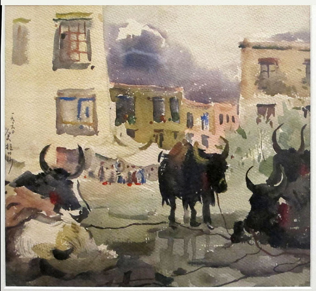 吴作人先生的名作《拉萨街头》,极具高原特色。
