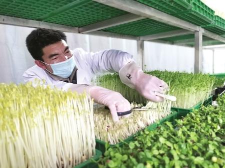 近日,康县岸门口镇“菜立方”无土栽培有机芽苗菜加盟种植户刘全辉,在温室管护培育的芽苗菜。2019年刘全辉加盟北京菜立方生物科技有限公司,成功将无土栽培技术引进康县,所种植的各种芽苗菜深受城区居民的喜爱。本报通讯员 黄培军 摄(陇南日报)