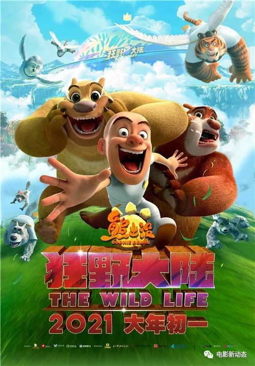 《熊出没·狂野大陆》是由丁亮、邵和麒联合执导,张伟,张秉君,谭笑等人配音的动画电影。影片讲述了受导游事业受挫的光头强,为了百万奖金参加能变身成动物的“狂野大陆”乐园,结果阴差阳错下与神秘人乐天和熊大熊二组队,但他们很快发现了一个惊天大阴谋的故事。该片于2021年2月12日在中国大陆上映。