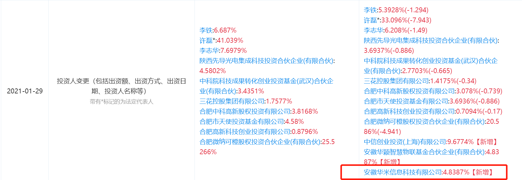 合肥微纳传感技术有限公司(以下简称“微纳感知”)发生工商变更,新增多位股东,包括中信创业投资(上海)有限公司、安徽华颖智慧物联基金合伙企业(有限合伙)、安徽华米信息科技有限公司(以下简称“华米”)。