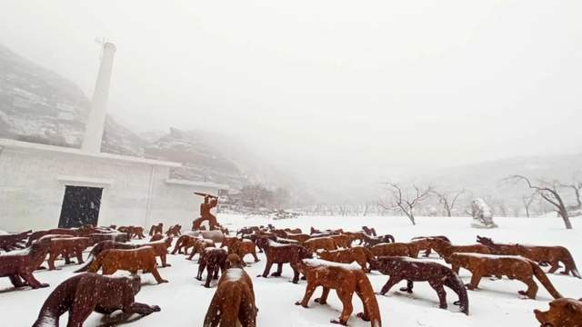 刘若望:这五个展览,每个展览的作品都不一样,北京这边以疫情为主体。在佛罗伦萨圣母领报广场和乌菲齐美术馆皮蒂广场展出的主要是“狼”系列主题雕塑。意大利很多城市基本上是靠旅游发展城市,他们希望艺术可以赋能城市,激活城市,于是在佛罗伦萨圣母领报广场和乌菲齐美术馆皮蒂广场均有展出;在山西阳高县守口堡雕塑群展出的也是“狼”系列主题雕塑,暗示大自然与人类活动之间错综复杂的关系,传达我对自然生态的关注;从峪口国际艺术区以“乡见”为主题,倡导将艺术融入乡村空间;榆林渡渡美术馆则以“生态保护”为主题强调美术馆与城市发展的共通性。我想通过公共艺术提高人们对环境保护重要性的认知。