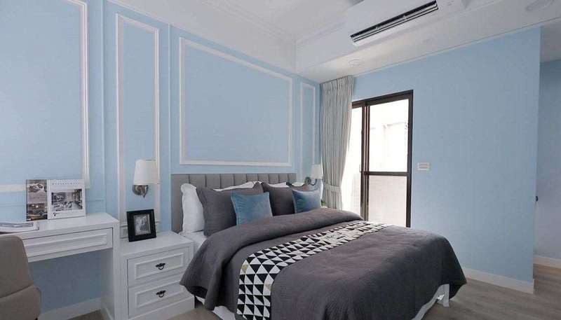 设计师掌握主卧尺度,将衣柜配置空间中心,营造动线、空间感,并结合梳妆机能,提升生活质量。窗边更增设大面卧榻区,便利屋主照看孩童,未来还可作为瑜伽、阅读角落。
