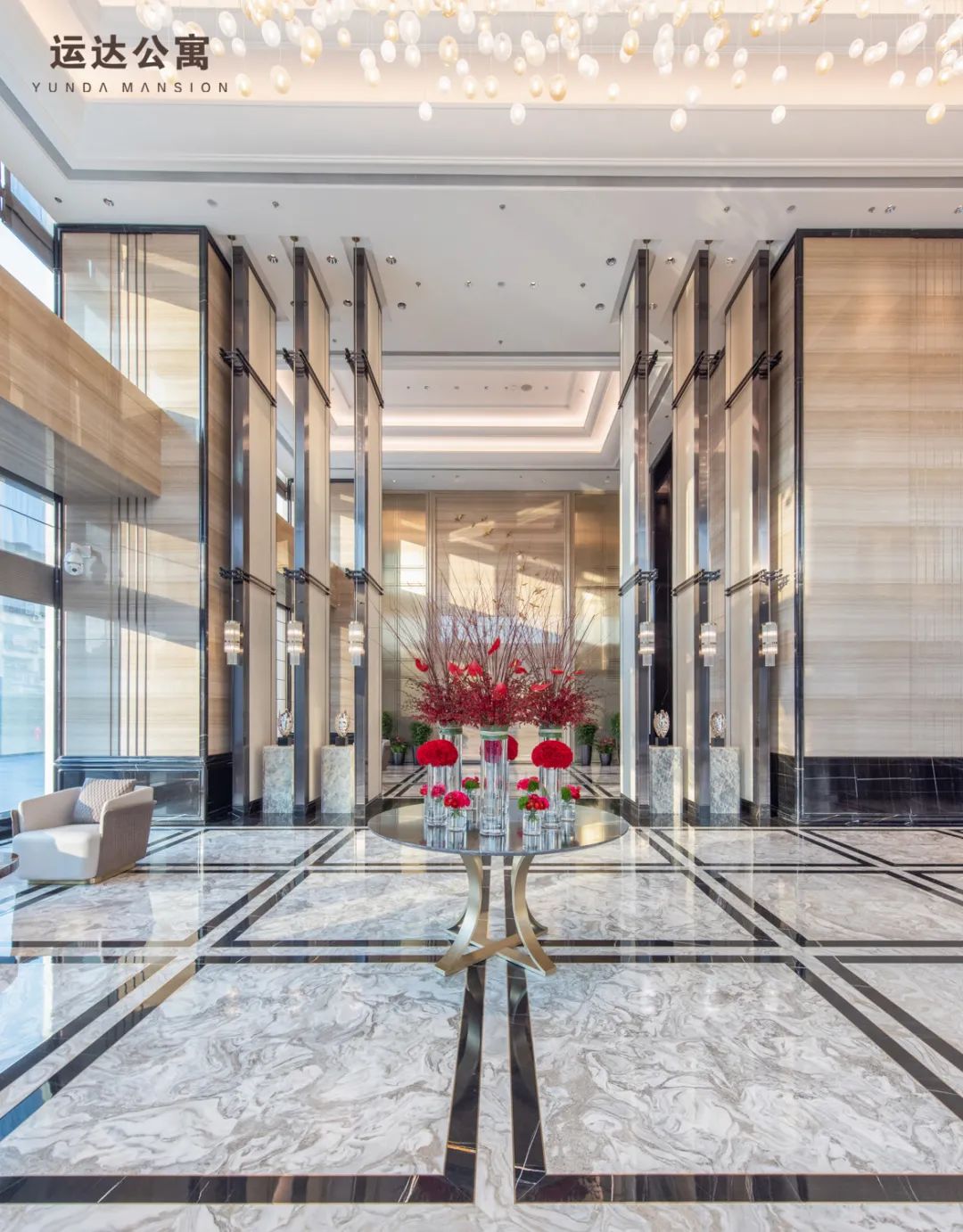 先入接待大厅,空间轩昂,线条俊朗,彩石如镜,高堂大户的即视感扑面而来!