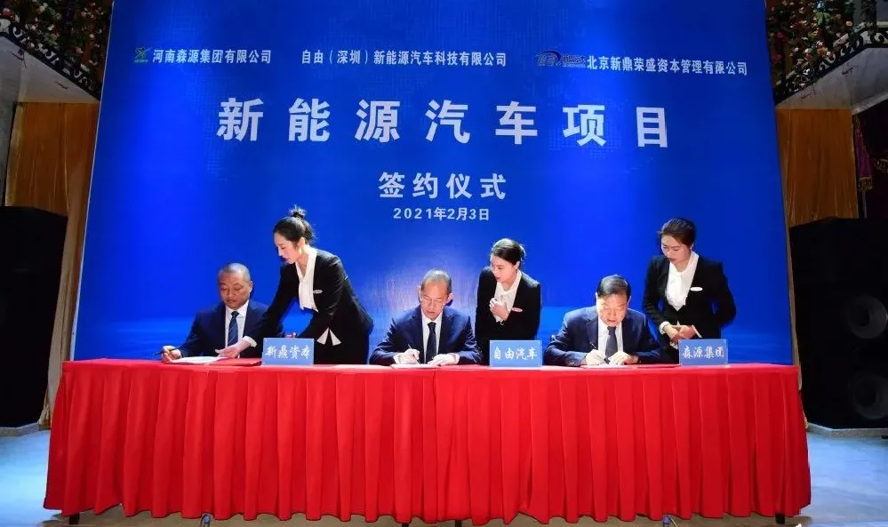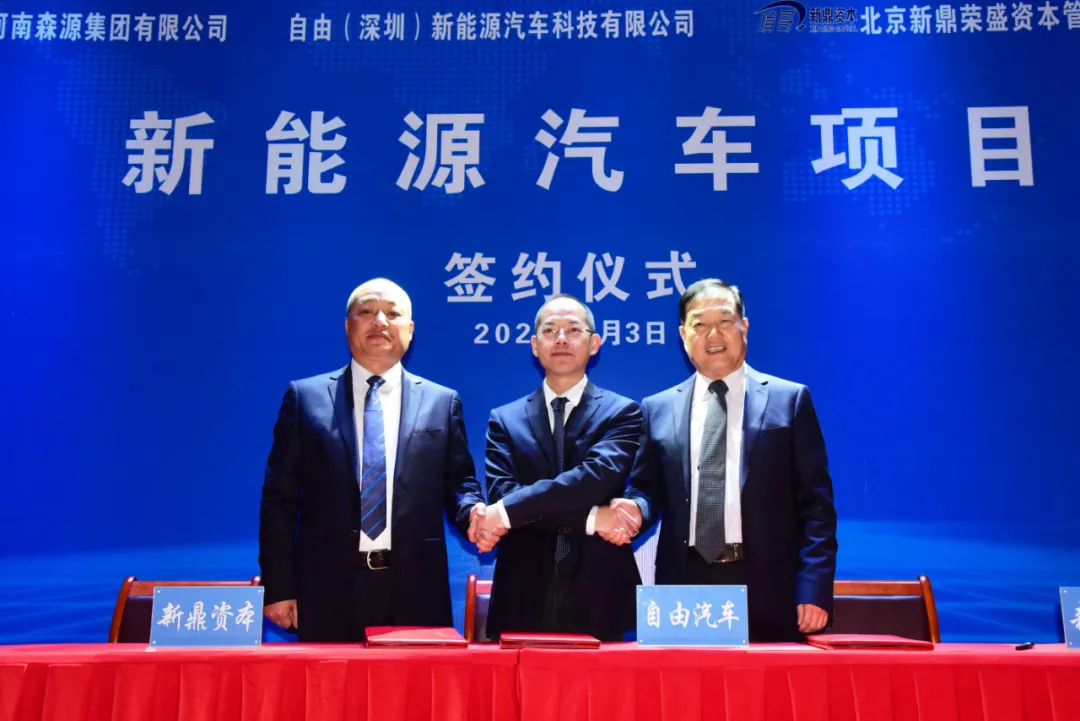 国家《新能源汽车产业发展规划(2021-2035年)》的发布实施,为新能源汽车产业发展提供了广阔的发展空间。“十四五”期间新能源汽车市场将进入“市场+政策”的双轮驱动新阶段。为此,河南森源集团有限公司、自由(深圳)新能源汽车科技有限公司、北京新鼎荣盛资本管理有限公司就新能源汽车项目,于2021年2月3日签署正式合作协议。