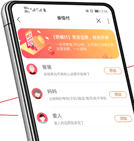 手机号与家人号码/宽带绑定,全家话费一起交;给家人办宽带/副卡,话费一起交,流量全家共用;全家互拨免费。