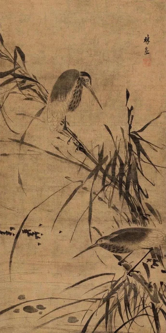 林良《寒芦栖禽图》
