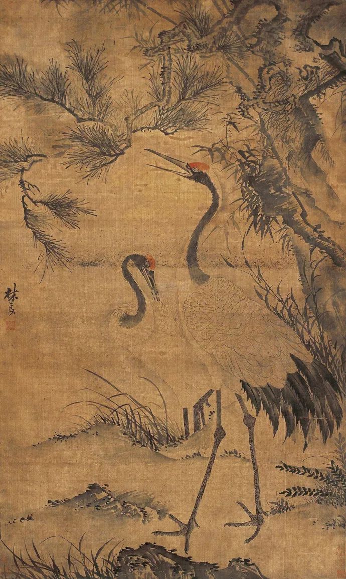 林良《松鹤立轴》