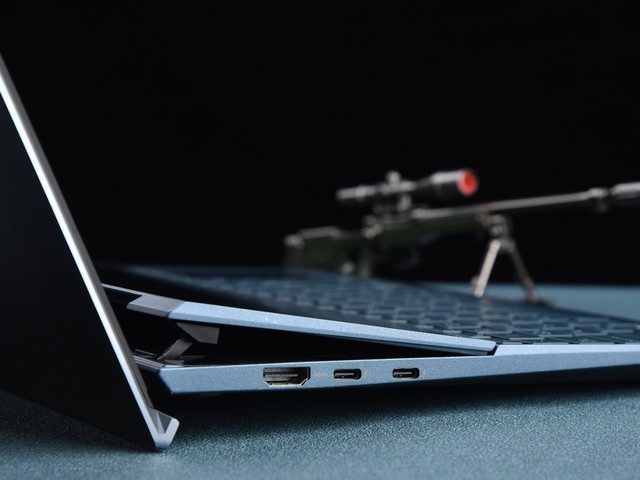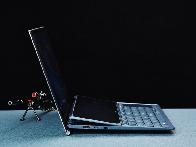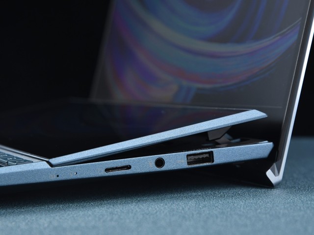 在C面产品模具的研发上,华硕灵耀X双屏笔记本可以说是无出其右,第二块屏幕被设计在了C面的上半部分,能够巧妙的与B面屏幕进行衔接。并且在单手开启笔记本后,灵耀X双屏的触控副屏打开后可抬升7度。而在使用的时候,你完全不用担心因为触摸以及触控笔的压力让本已抬起的副屏下陷问题。