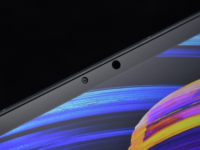 我在华硕灵耀X双屏笔记本的时候,曾经一度以为这款笔记本将麦克风取消了,但仔细查找之后,我才发现这款笔记本设计的巧妙。通常来讲,麦克风经常出现的地方在于屏幕边框的最上方,或是C面键盘部分,但华硕灵耀X双屏笔记本却将麦克风嵌入了A面与B面之间的硅胶条之间,不仔细看的话是绝对看不出来的,并且麦克风同样使用了阵列设计。支持Cortana(小娜)和Alexa语音识别。摄像头的部分也同样支持WindowsHello功能,并且在摄像头旁边还有一颗红外3D摄像头,因此即便是在暗光环境下,依然可以实现开盖即解锁的功能,同时F10功能还能开启和关闭摄像头,在暂时不使用的时候也能极大的保护自己的安全隐私。