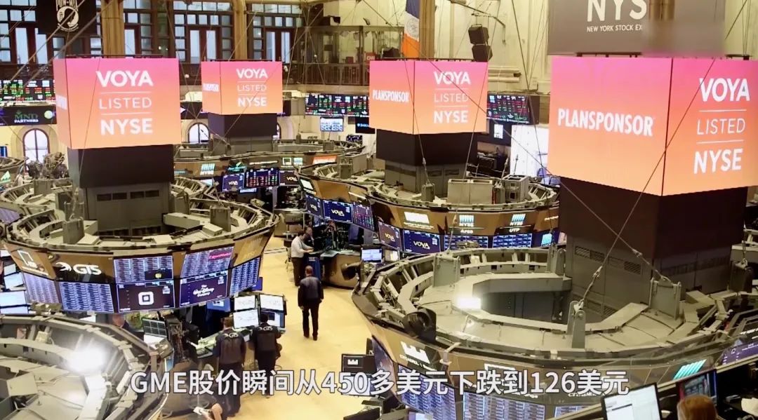 因为限制交易,GME股价瞬间从450多美元下跌到126美元。