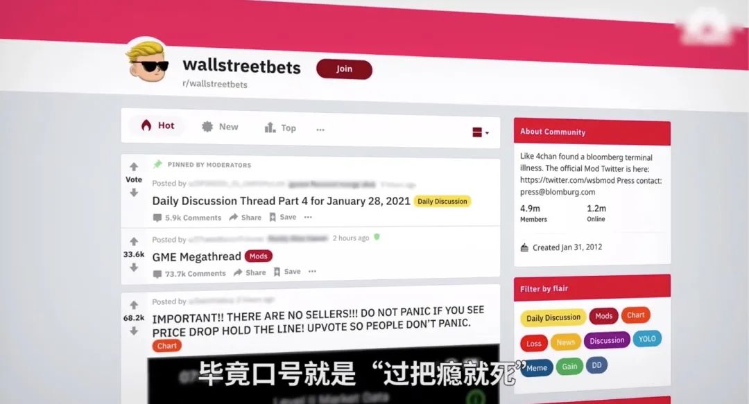 于是,这次故事中干翻华尔街的主角就登场了,美国有个论坛叫reddit,你可以把它看成美国虎扑或者天涯,这个论坛呢有个分论坛叫“WallStreetBets华尔街赌局”。