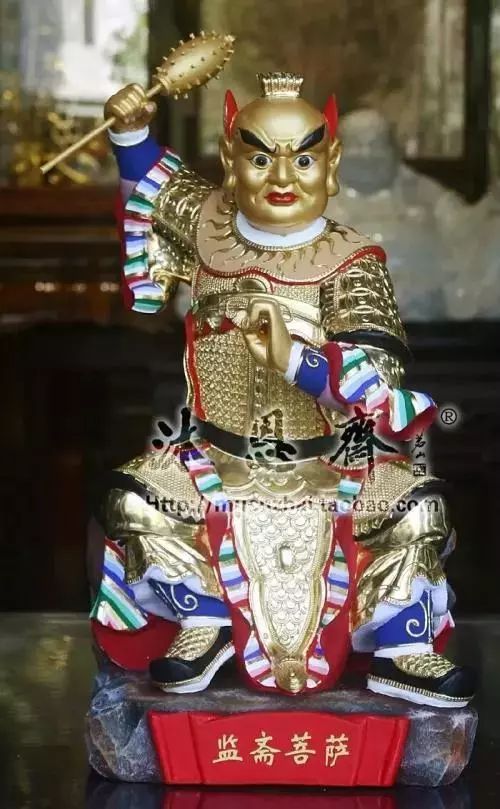 我们在寺院中常会听到一句谚语:“未供先尝三铁棒,私造饮食九铜锤。”若偷尝还没有供佛前之食物,要挨受三记铁棒;若私自烧煮食物,要罚打九次铜锤。掌管铁棒和铜锤的就是这位监斋菩萨。