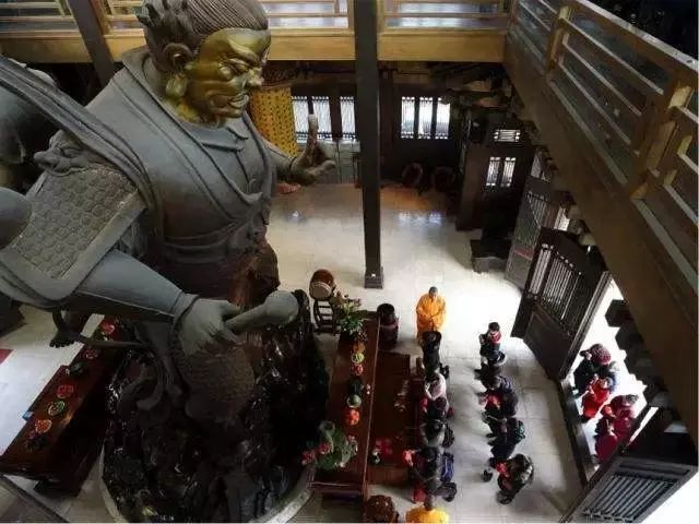 为了纪念这位师父的护寺之功,少林寺僧众在寺院中为他塑了像,建立了紧那罗殿,请他担负寺院的护法伽蓝菩萨,并塑化形像供于厨上,供奉为“监斋使者”,以监察寺院饮食之事。这种传说传出后,天下寺院都纷纷效法,广泛在寺中塑起了“监斋菩萨”像。