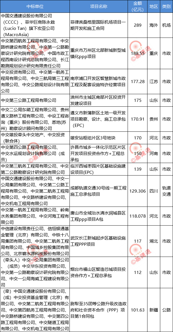上述项目,除过中国交建总公司的操刀外,还包括中交四航局、中交投资、中交三公局、中交二公局、中交四公局、中交三航局、中交一公局、中交一航局、中交二航局、中交路建、中交机电局等 9 家二级子企在内,能参与百亿工程的建设,可见这些单位在施工能力、投融资等方面是具有自己的优势。