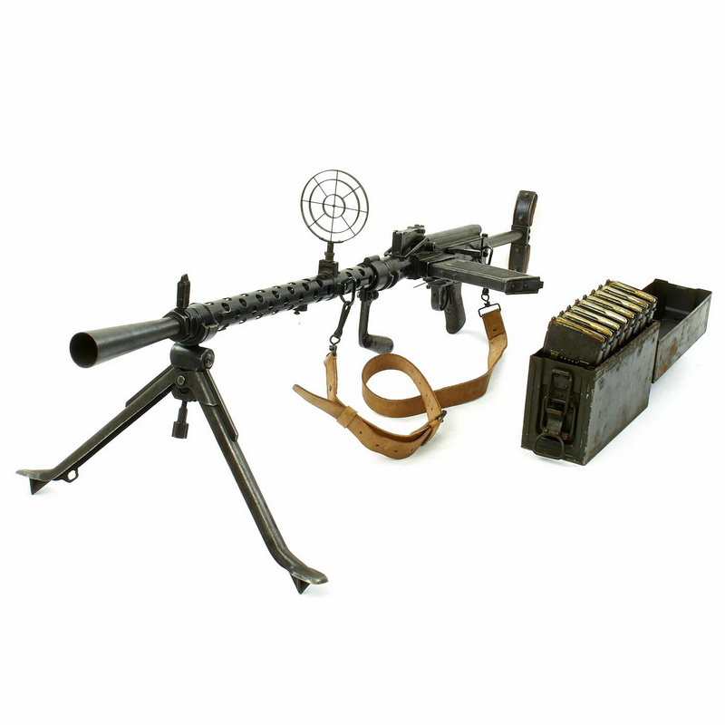1934年,毛瑟公司的设计师海因里希·沃尔默(Heinrich Vollmer)又把MG-30进行改进设计出MG-34。MG-34使用毛瑟7.92X57枪弹,采用弹链或弹鼓供弹,长度约1.2米,射速800-900/分钟,射程200-2000米。MG-34重约12公斤,可由单兵携带作战,又可以装三脚架作为重机枪使用,所以被称为世界上第一种通用机枪。