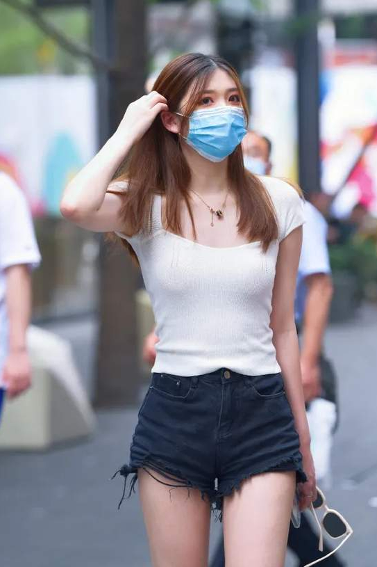 小姐姐的身材十分高挑和匀称,打扮的风格也显得很新潮,独自惬意的漫步在人员众多的街头,上半身穿着一件白色圆领短袖T恤,修身功能很强大,轻松把她那绰约多姿的好身材给展现了出来,给路人们带来了心旷神怡的视觉享受。