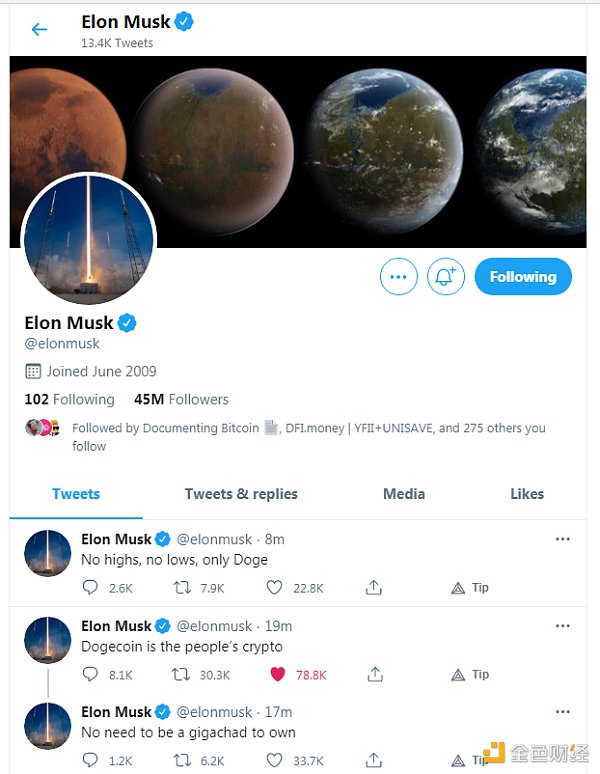 众所周知,马斯克一直是狗狗币的热衷粉丝,其在推特上“喊单”狗狗币多年。