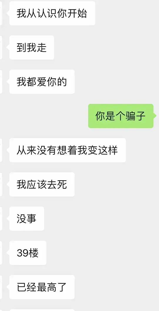 是的 你们没有看错。我和我爸和渣男对峙完后,就买了机票,准备回国,渣男装出一副自己失去全世界的样子,订了39层酒店的房间,说如果我上飞机,就要去自尽