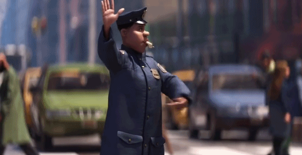 一名交警吹响哨子,兢兢业业地指挥交通。