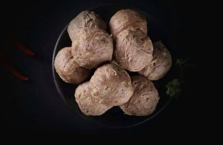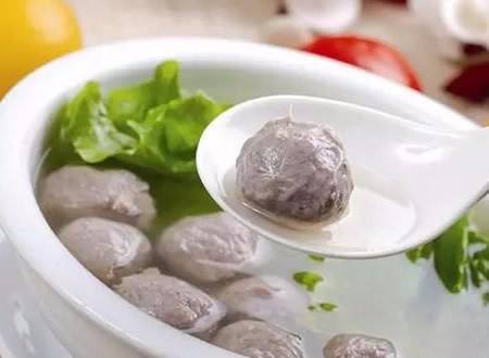 潮汕牛肉丸一般选用整块的新鲜牛后腿肉,本地黄牛从宰杀到上桌不超过六小时,牛肉丸的含肉量必须达到90%以上。