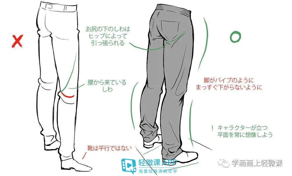 膝盖上的皱纹,从后面看,也是被腰拉着的。一般来说,身体站着休息的时候,不太会出现动态动作的皱纹。