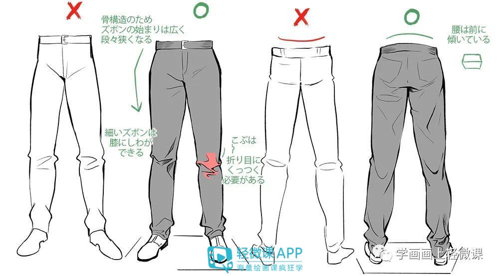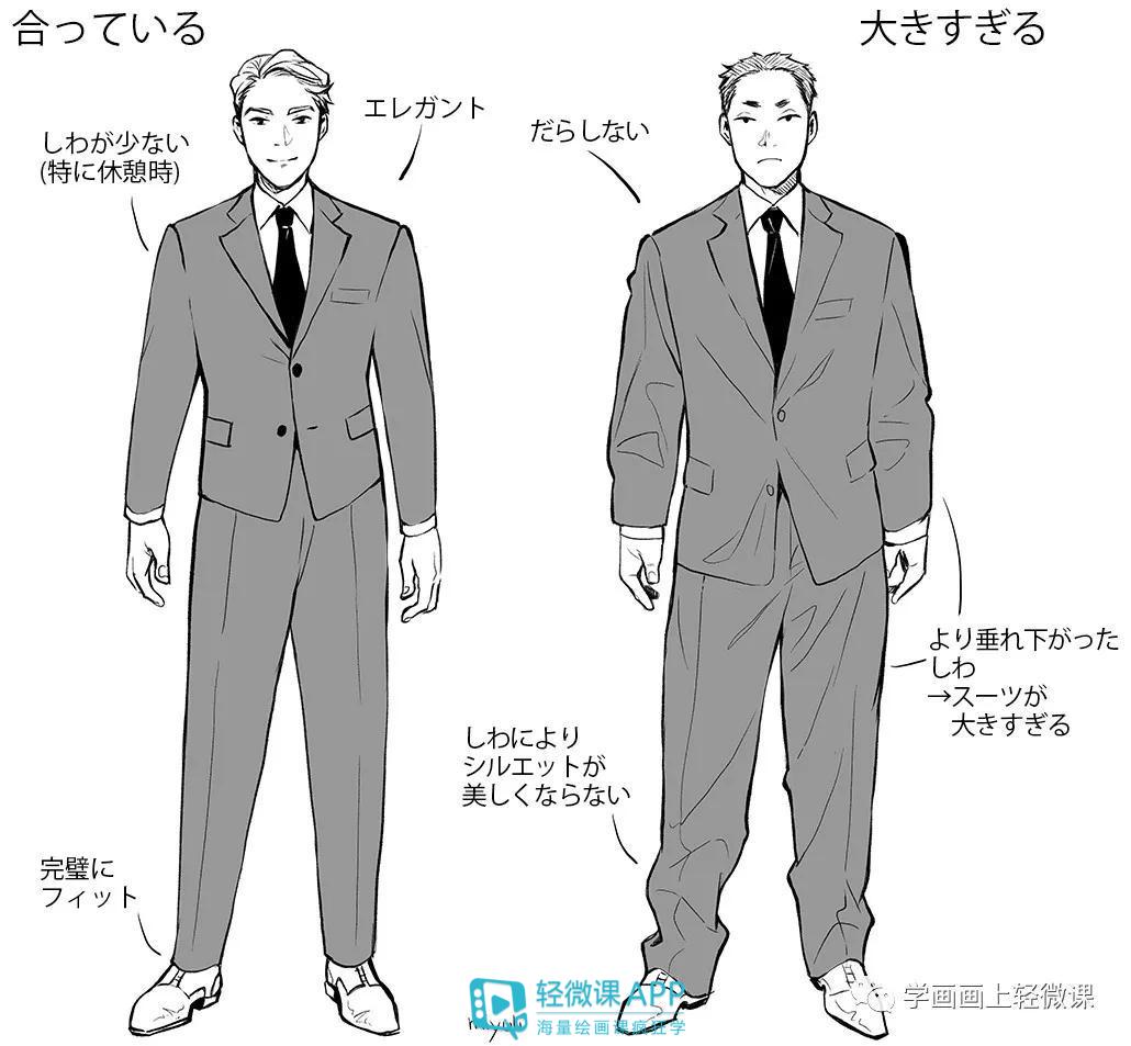 宽松的衣服产生的褶皱与窄的衣服会大不一样,这一点需要注意。
