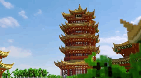 比如,黄鹤楼的 72 根圆柱、60 个向外飞展的翘角、屋顶数万块黄色琉璃瓦片,全部被精细还原,据说它也成了《我的世界》游戏史上还原度最高的古建筑之一。