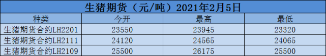 生猪期货合约LH2109报价:今开:25500元/吨,最高26175元/吨,最低25500元/吨。