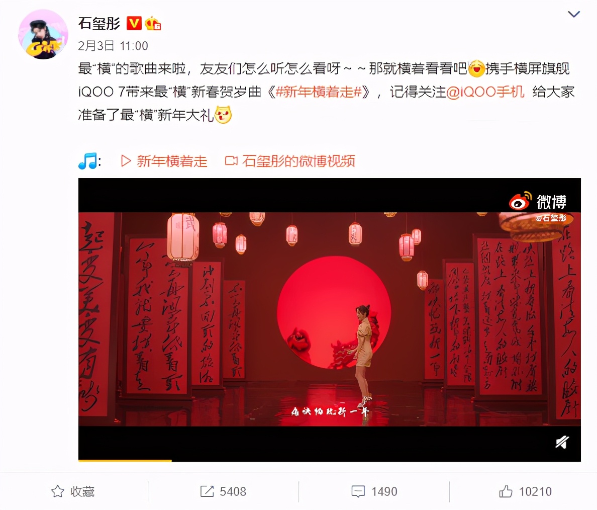 当然了,如果大家对iQOO 7或者是这首《新年横着走》感兴趣的话,不妨将视角移步到iQOO官方微博或是各大音乐平台进行进一步了解,也希望在今后,iQOO与石玺彤依旧能将更多的作品与产品展现在大家的视野当中,就让我们一起拭目以待吧。最后,提前祝大家新春愉快。