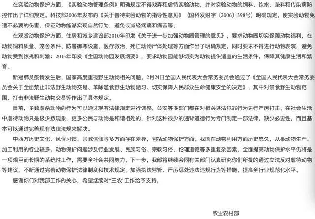 农业农村部在官网发表对相关议案的回复