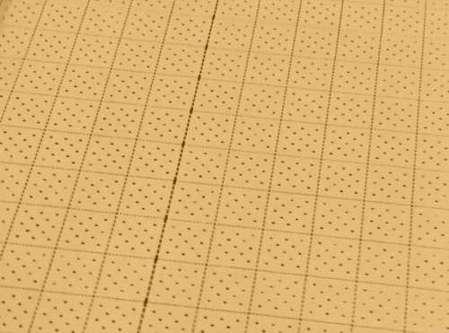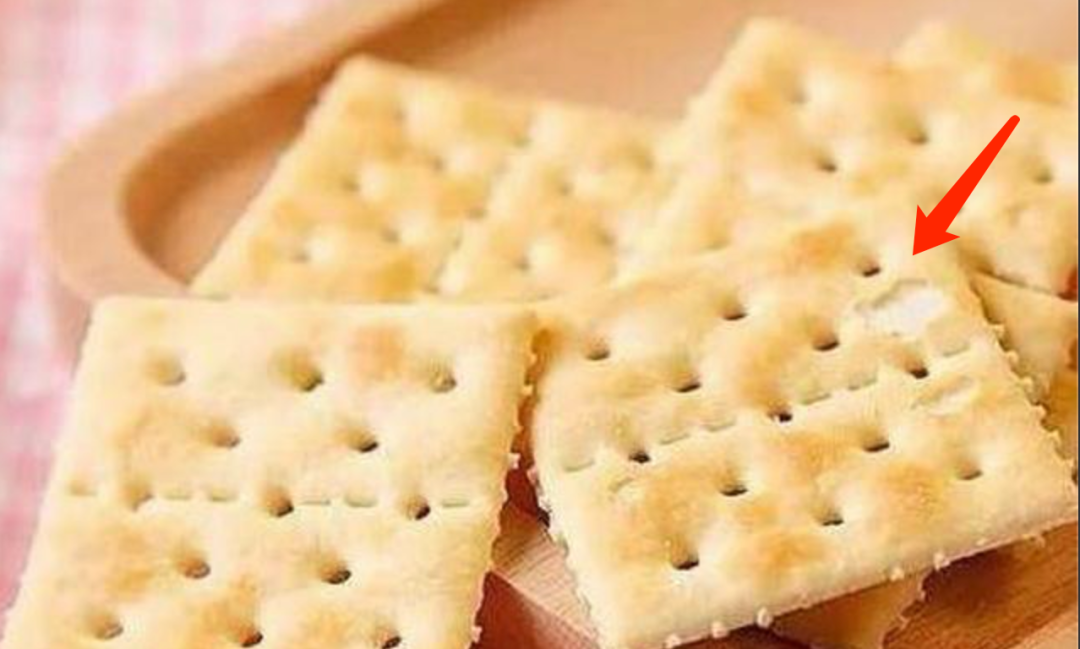 我估计所有人都和我一样,最早注意到苏打饼干的特征,就是表面的整齐孔洞了……而且吧,有时候我们吃的苏打饼干表面还有这种破裂,这其实是做饼干时气体释放的过程中给涨破了。所以才需要提前扎一些孔洞,避免烘焙过程中水分和气体释放时导致面皮变形。