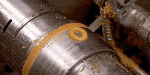 在滚筒滚动时,就把花生酱啊什么的,放置在了饼干上。我忽然明白了为啥以往吃到的有些夹心饼干的甜心会有点空……原来挤出来就是个圆环!