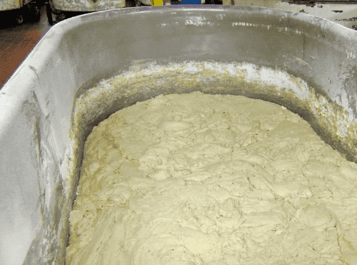 现在就要在面团中加入小苏打来调整发酵面团的酸碱度,从而获取想要的味道、颜色。小苏打会中和酸味,还能让饼干烤完颜色略带一点黄色。再继续加入盐、小麦粉、油之后继续搅拌,让老面团和新材料混合,以老带新,再发酵六个小时,就得到可以做成酥脆苏打饼干的面团~