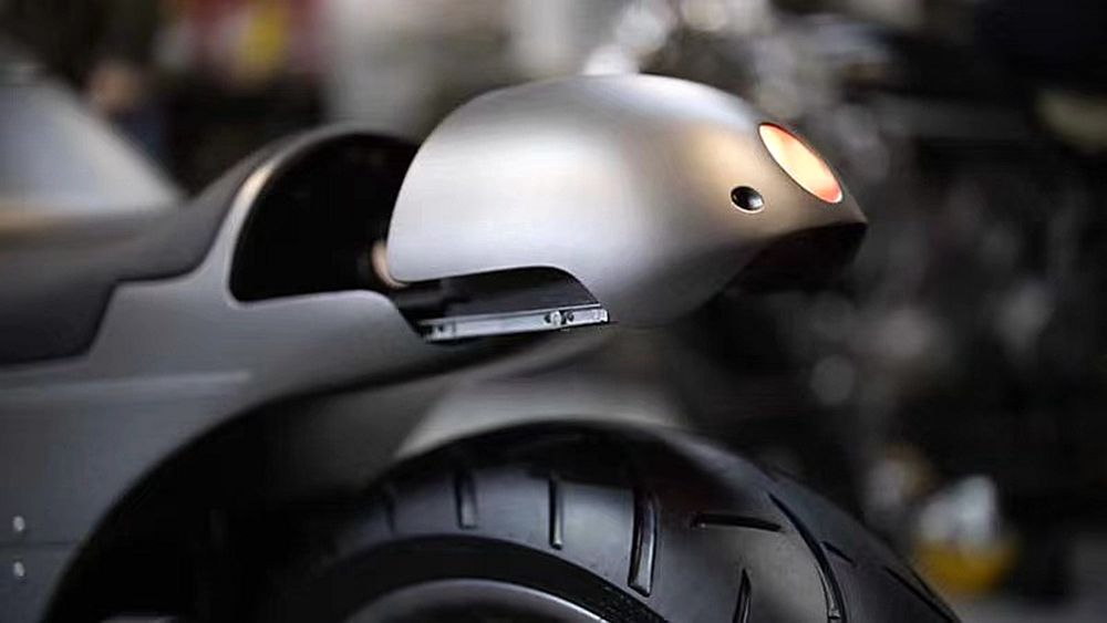 当然最赞的还是整车的外观,经过升级后,整车采用金属感非常强的铝板覆盖,整车涂装都是采用深灰色(亚光)涂装,改装后R nineT R18充满未来感、复古感、也有点像老式飞机,有着浓浓的赛博朋克风和独特的气质。在细节上,经过改装的座椅,选用了上等牛皮,同时座位采取滑块设计,拉出后内置了一个USB插口,座位下面在浅灰色的边框上用6颗铆钉来突出机械感,在车灯的改装上你会隐约发现宝马Z4的影子,在仪表上使用复古的类似晶体管显示的仪表。