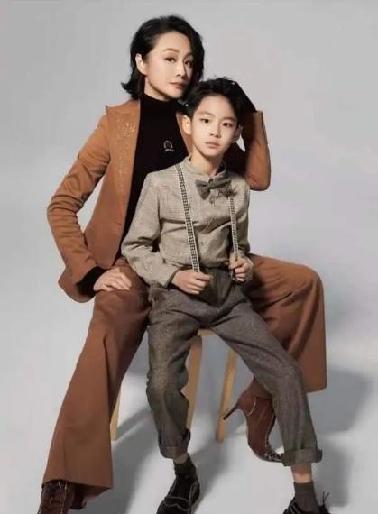曹颖和儿子一起拍大片,儿子10岁身高只比妈矮一头,曹颖也很年轻。曹颖儿子的身高真是遗传了夫妻俩,太高挑了。
