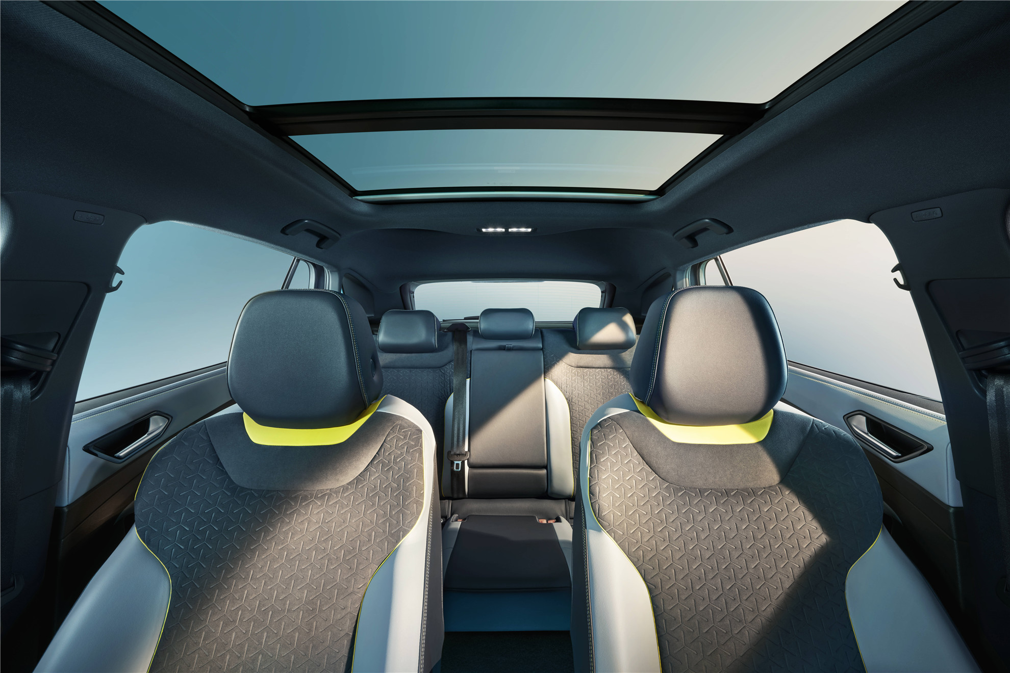 空间方面该车也表现不俗。由于没有传统的中央通道,前排内部的空间得以提升。长达2765mm的轴距也保证了该车有着出色的后排空间。1280mm x 815mm超大尺寸的全视野玻璃天顶更增强了车内的通透性,坐在车中如置身移动透明玻璃房。