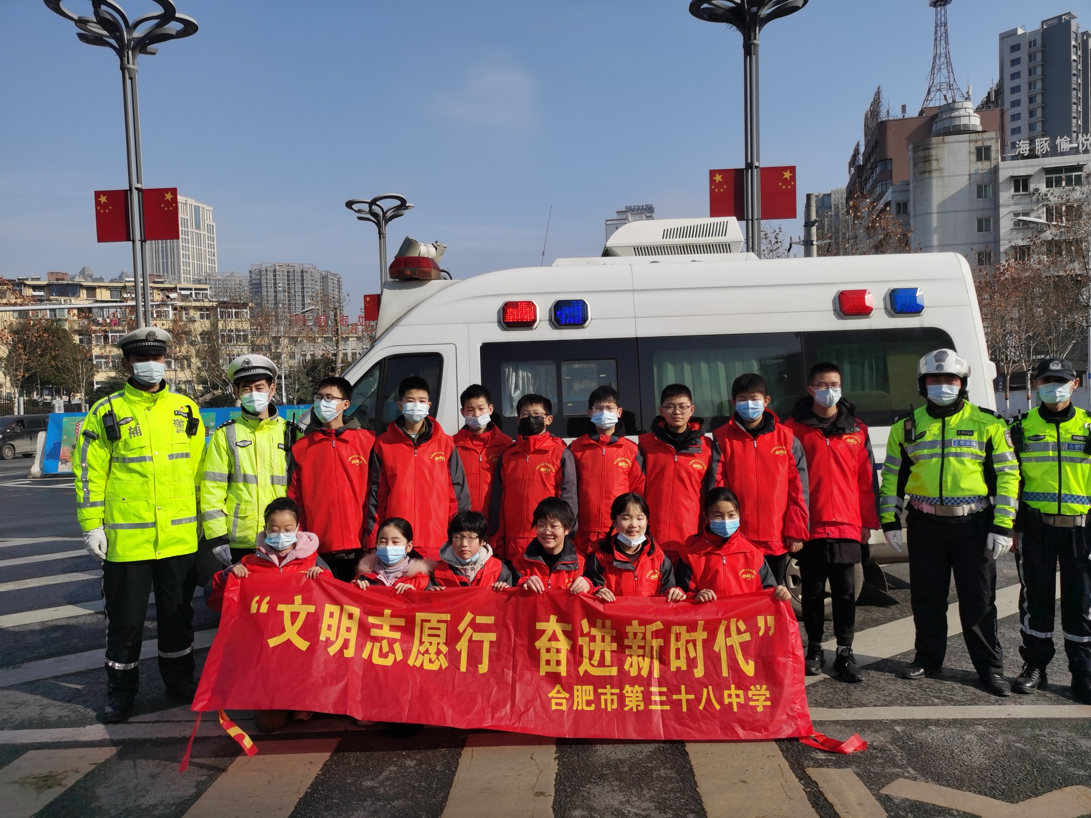 为提升学生交通安全防范意识,增进孩子们对交警岗位的深入了解,充实寒假生活,2021年2月6日,合肥市公安局交警支队瑶海大队一中队联合三十八中学开展“学当小交警、安全记心间”社会实践活动。