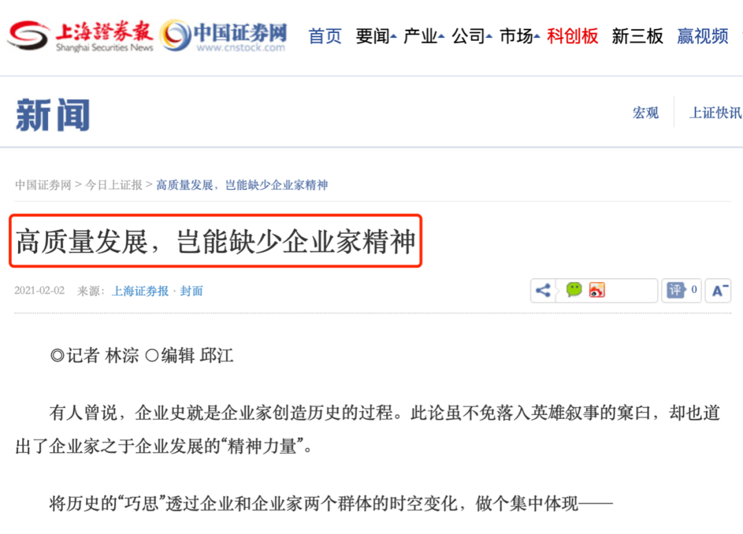最近,新华社旗下的上海证券报发了一篇重磅评论,题为《高质量发展,岂能缺少企业家精神》,很多人将其解读为风向标,一见君深以为然。